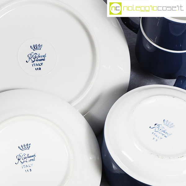 Richard Ginori, set tazze e tazzine Colonna, Giovanni Gariboldi, 1954, tazza cm 12,5x10x5,5, piattino grande diam. cm 16,5, tazzina cm 8,5x6x5,5, piattino piccolo diam. cm 12,5