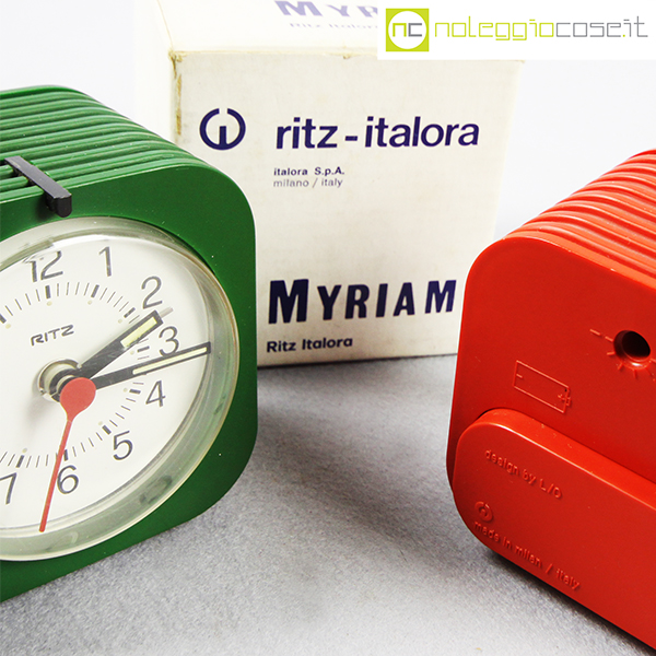 Ritz Italora, orologi da tavolo Myriam, L/O Design, 1970, cm 8,5×7 – h 9