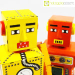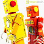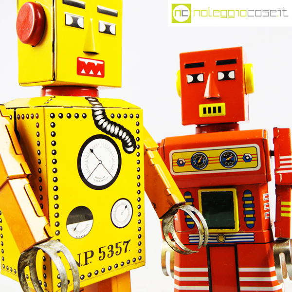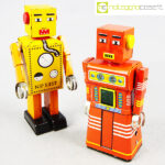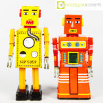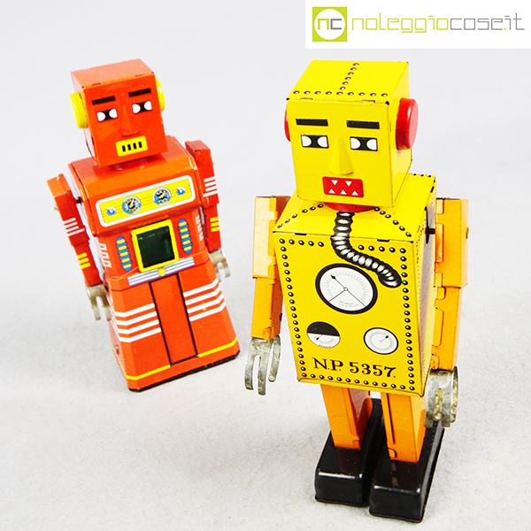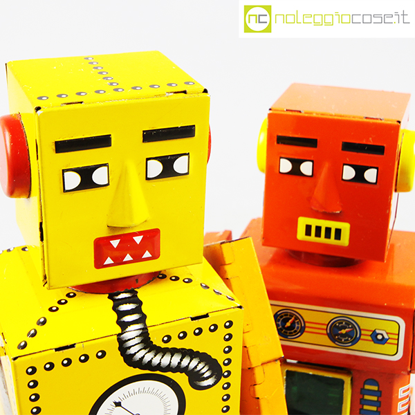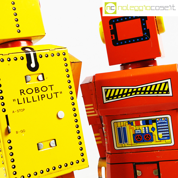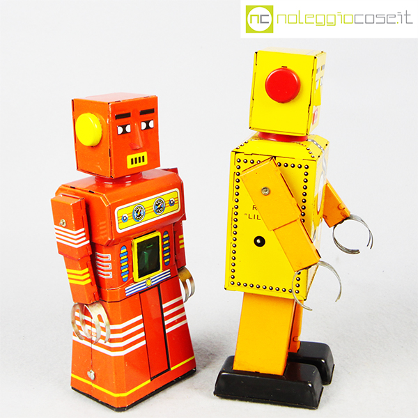 Robot Lilliput in latta, 1960, giallo cm 9,5x7x22, rosso cm 9,5×5,5×20