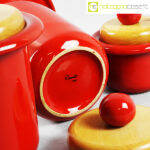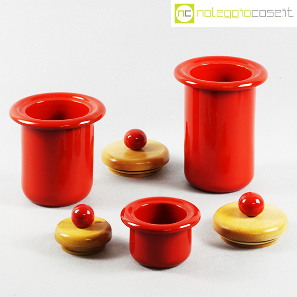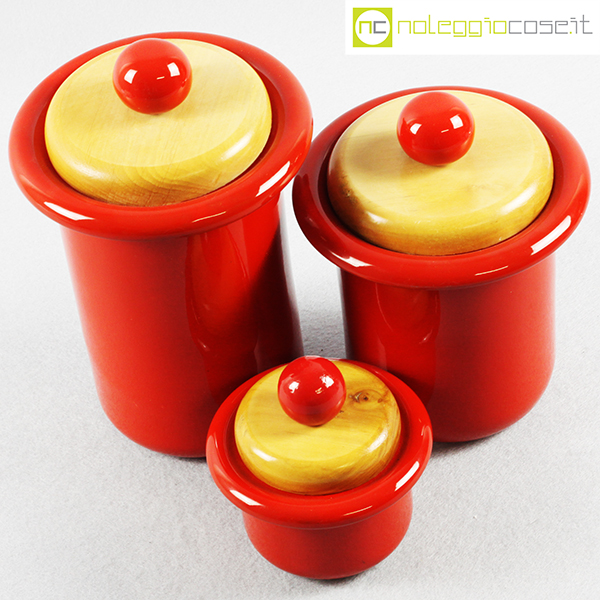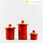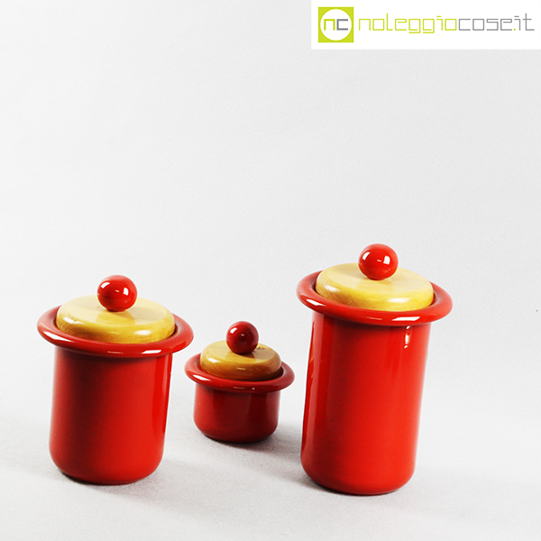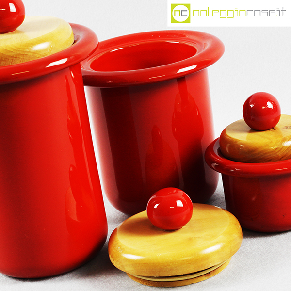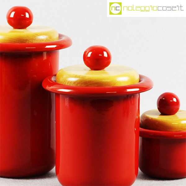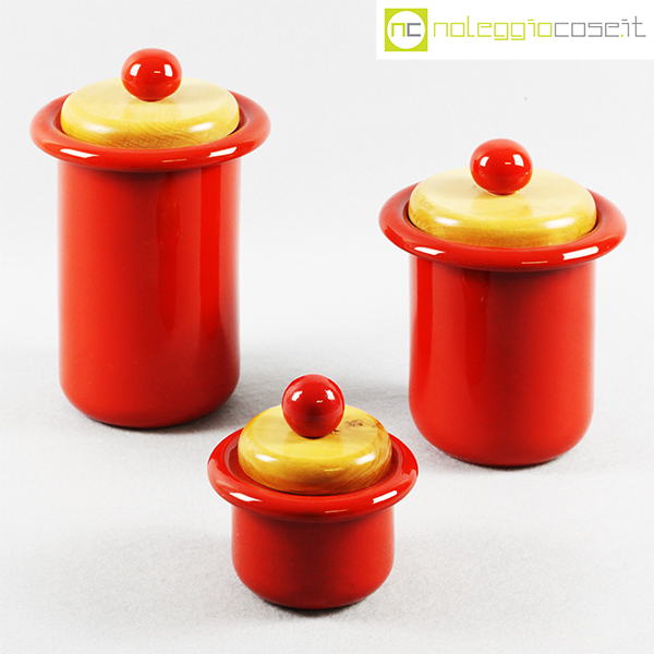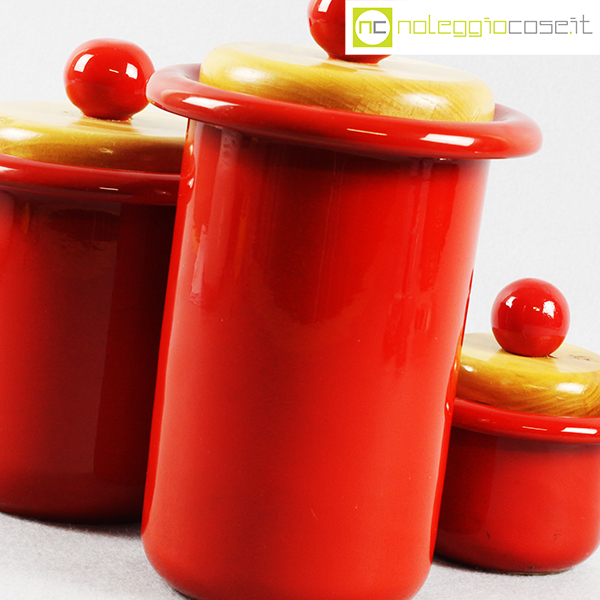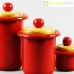 Rometti, barattoli rossi con tappo, grande cm 13,5×13,5×21,5, medio cm 13,5×13,5×17,5, piccolo cm 10x10x10,5