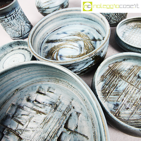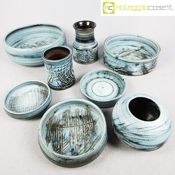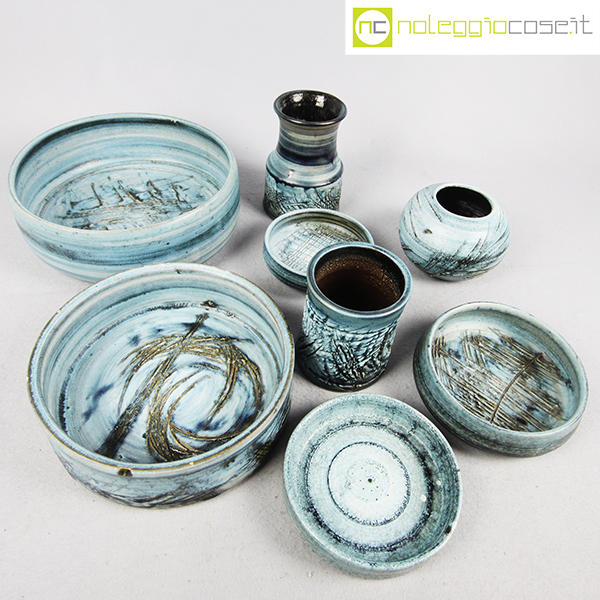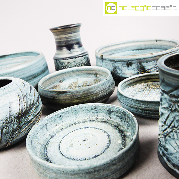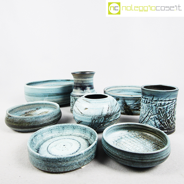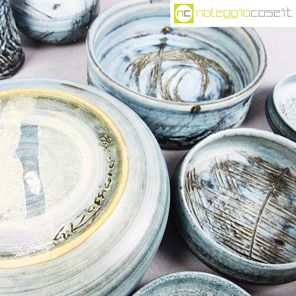 Rossicone Ceramiche, set ceramiche, Giuseppe Rossicone, 1990, diametro da cm 10 a 25, altezza da cm 3 a 15