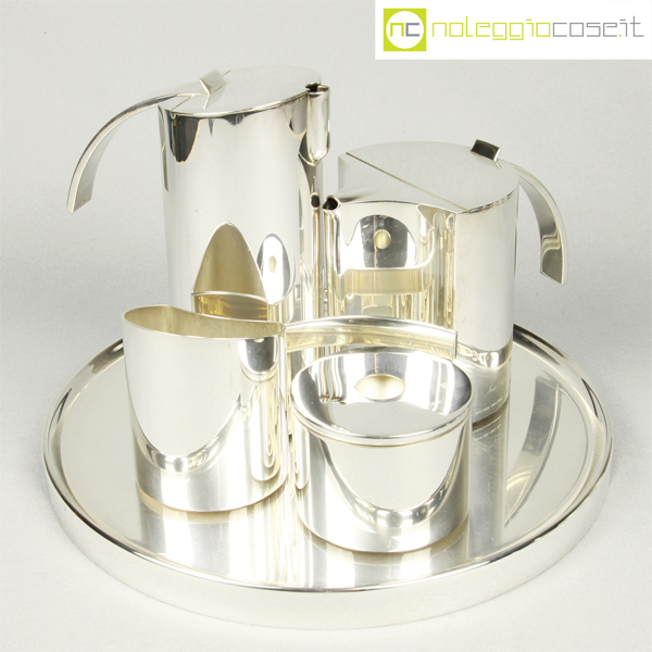 Sabattini, servizio da tè e caffè Stairs, Lino Sabattini, 1971-2000, vassoio diam. 30 cm, h max. 20 cm