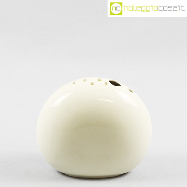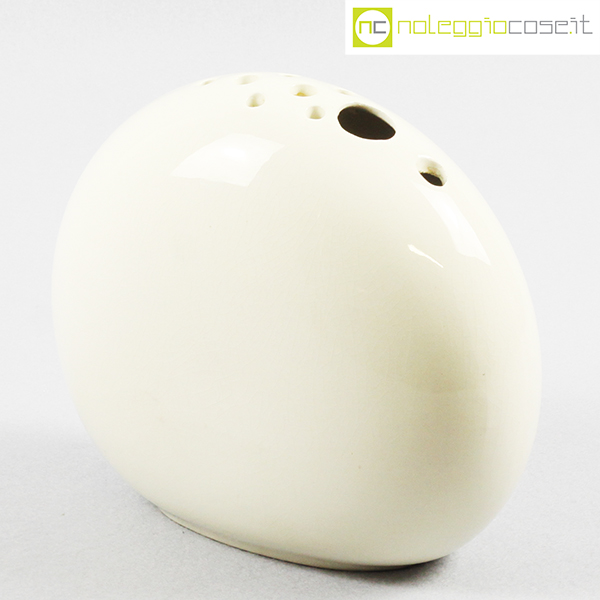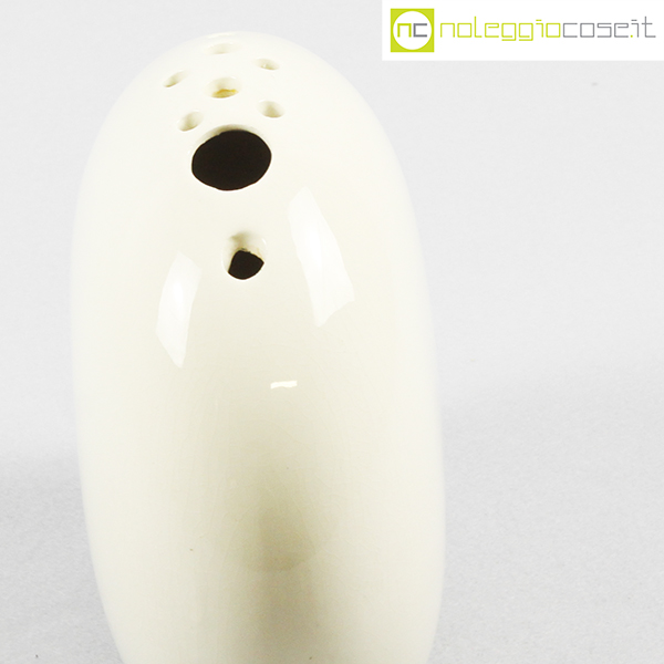 SCC Ceramiche, vaso bianco con buchi, anni ’80, cm 21,5×10,5 – h 19