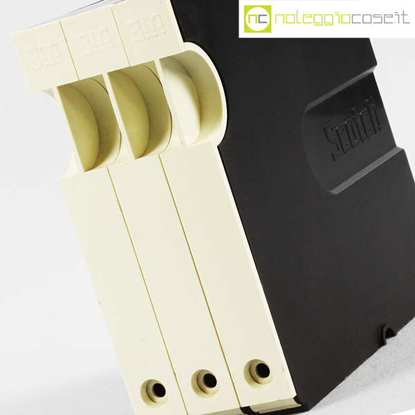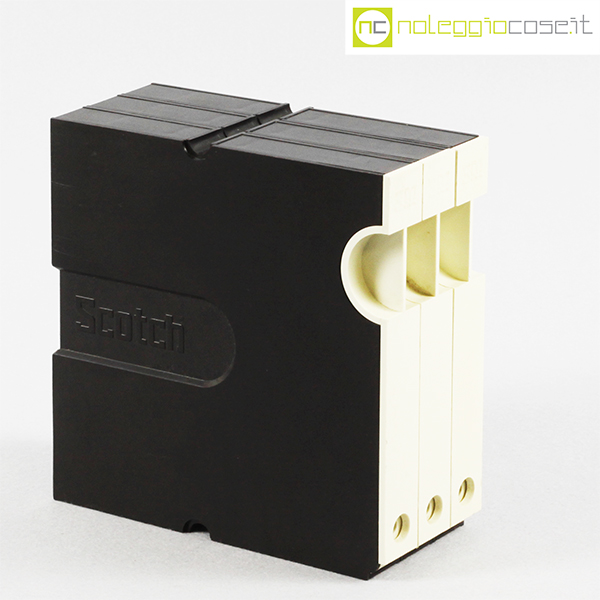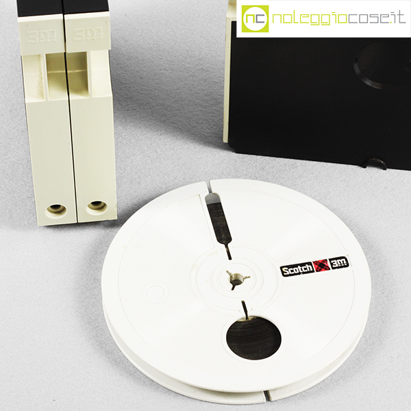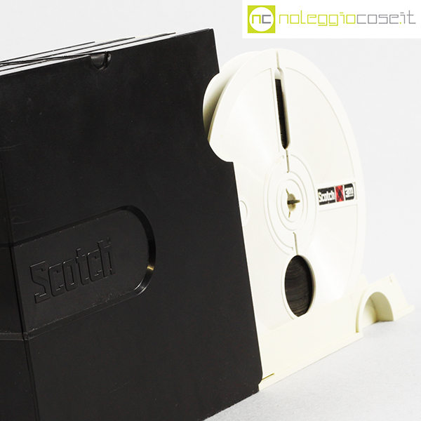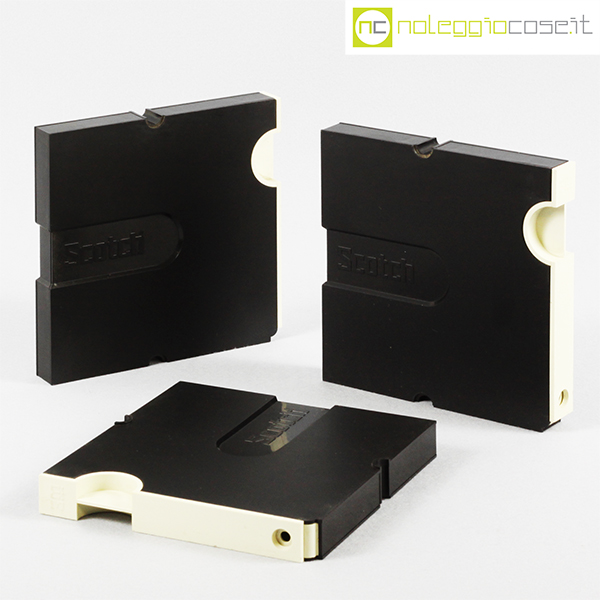 Scotch 3M, nastri magnetici e custodie per archiviazione, Luigi Bandini Buti, 1976, contenitori cm 16,5×2 – h 16,5