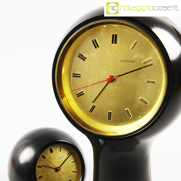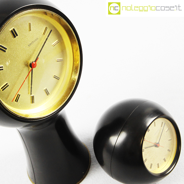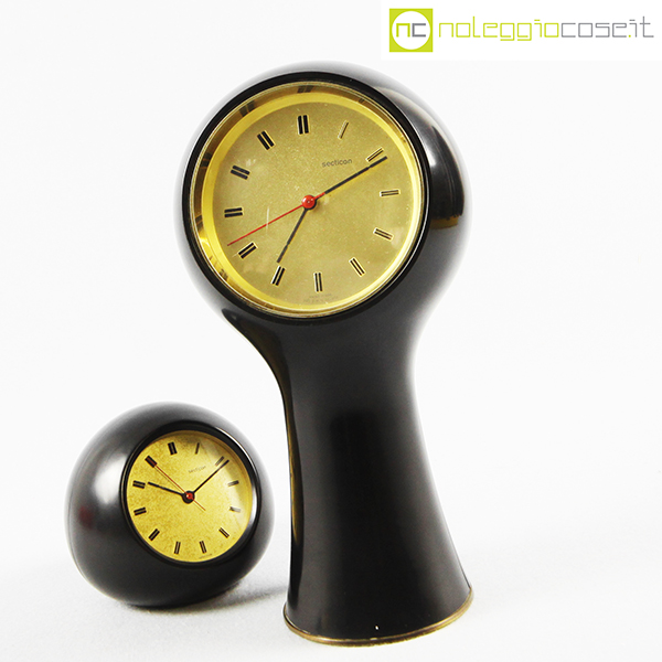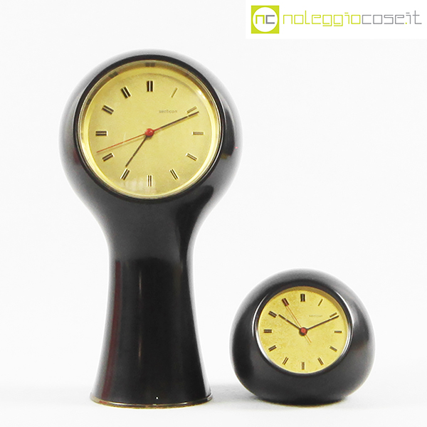Secticon, orologi da tavolo T1 e T2 nero, Angelo Mangiarotti, 1956, mod. alto cm 12x10x24, mod. basso cm 9x10x9