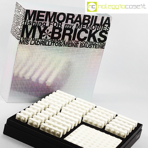 Seletti, mattoncini componibili My Bricks, Selab + Alessandro Zambelli, 2014, base cm 16,5×16,5, rettangolari (26pz.) cm 8×4, quadrati (12pz.) cm 4×4