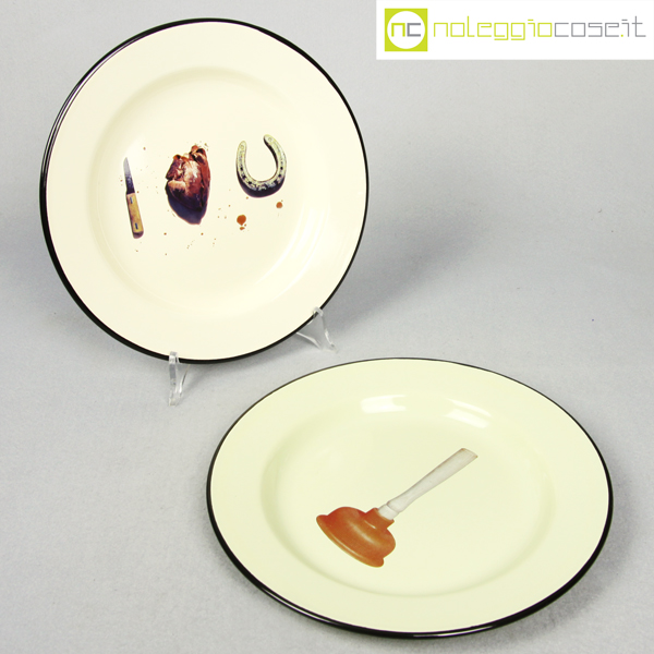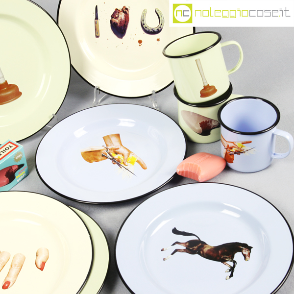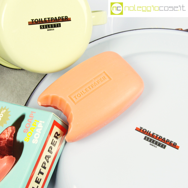 Seletti, servizio da tavola Toiletpaper, Maurizio Cattelan, 2012, piatti diam. Cm 26, tazze cm 10x10x9, saponetta cm 10×9
