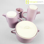 SIC Ceramiche Artistiche, set da tè anni ’70, biscottiera cm 27x19x14, teiera alta cm 18x9x22