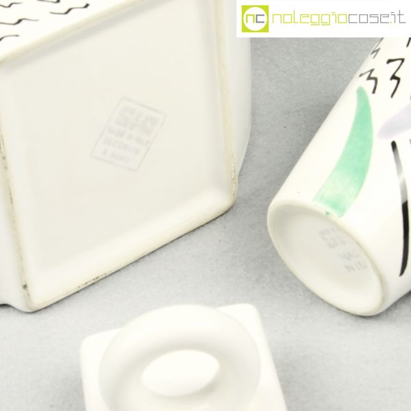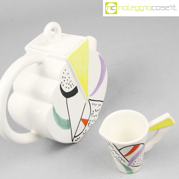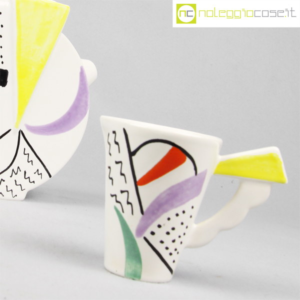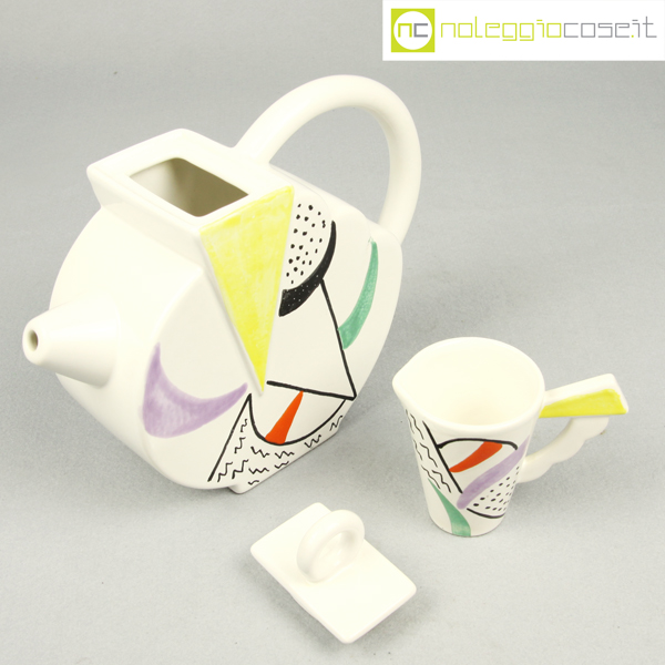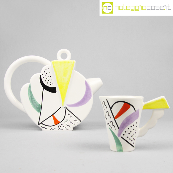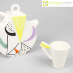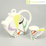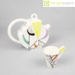 SIC Ceramiche, teiera con tazzina postmodern style, 1980, teiera cm 23x8x19, tazzina 10×6,5×8