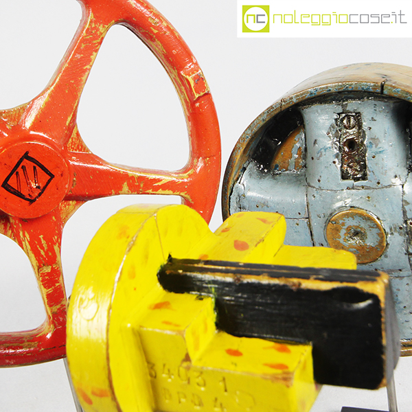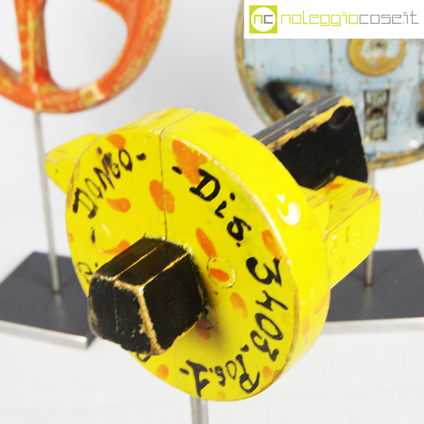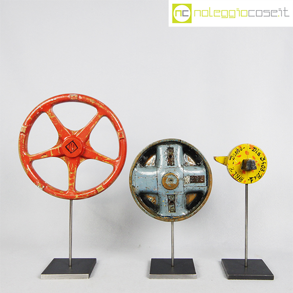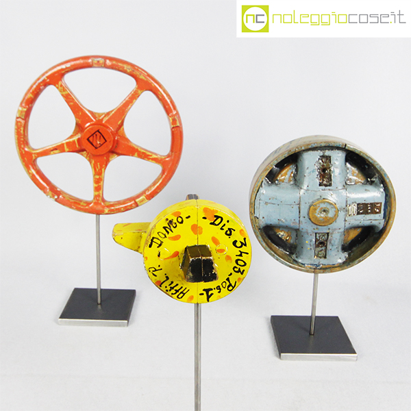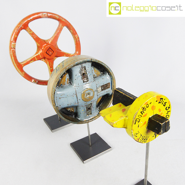 Stampi per fonderia con supporto 01, rosso cm 23x4x23, azzurro cm 18x6x18, giallo cm 11x12x9 (misure senza supporto)