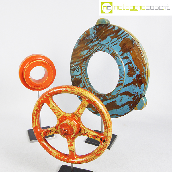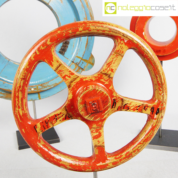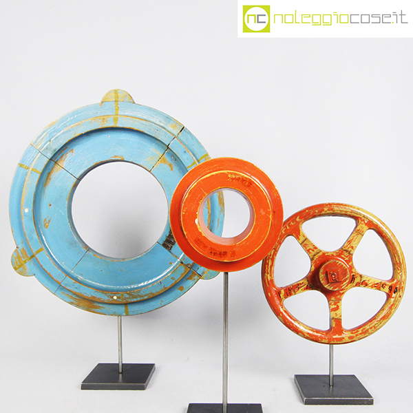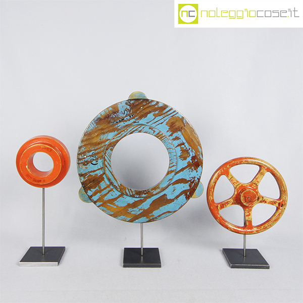 Stampi per fonderia con supporto 03, rosso a raggi cm 22x6x22, rosso cm 14x4x14, azzurro grande cm 35x3x35 (misure senza supporto)