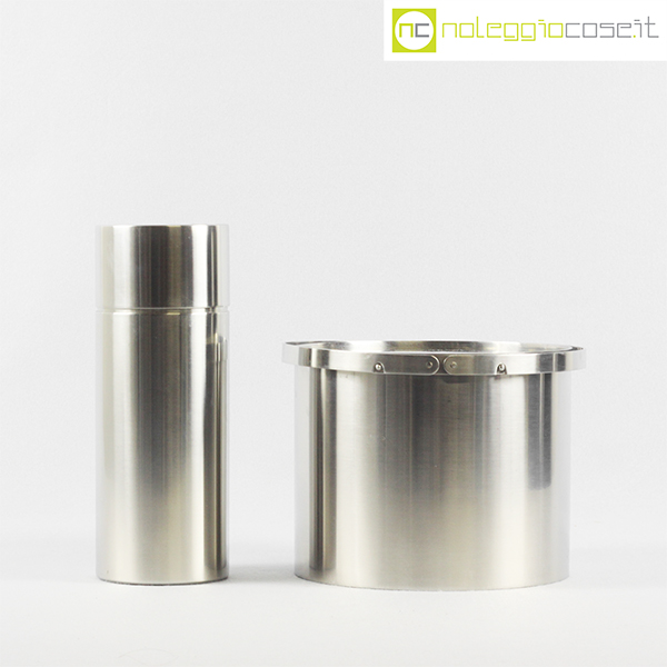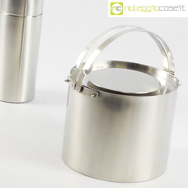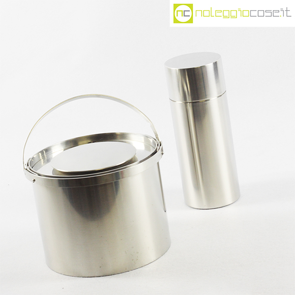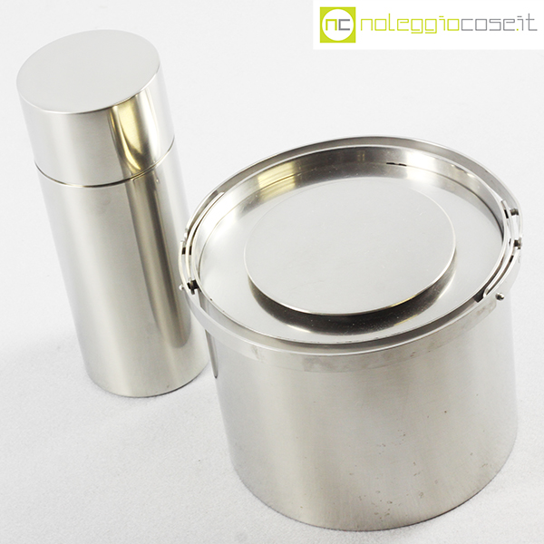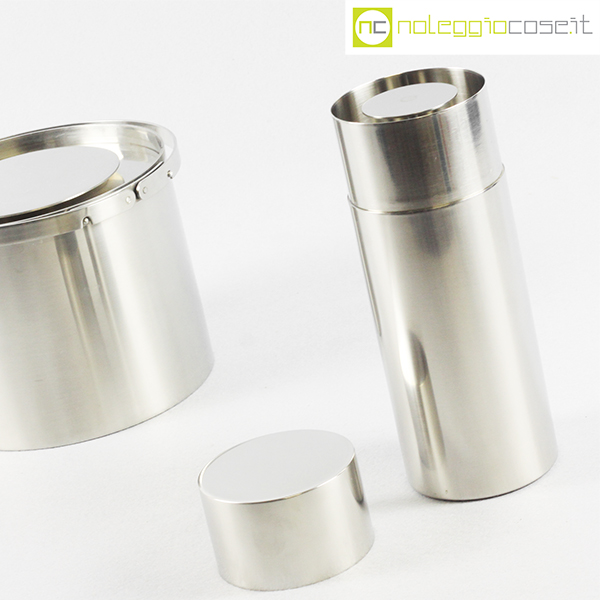 Stelton, shaker e portaghiaccio grande serie Cylinda, Erik Magnussen, 1977, shaker cm 8,5×8,5×22,5, portaghiaccio cm 20x20x15