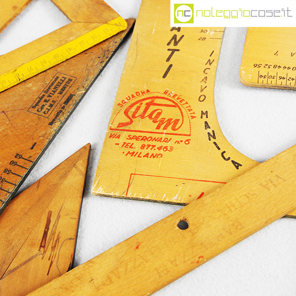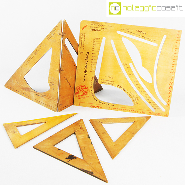 Strumenti da sartoria in legno, rettangolare cm 32×29, apribile cm 30×30, squadre circa cm 20×20