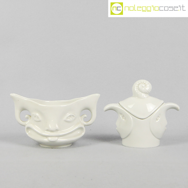 Tendentse, zuccheriera e cremiera serie “Diavoletti da Tavola”, Riccardo Dalisi, 1990, cremiera cm 17x8x10, zuccheriera cm 15x7x13