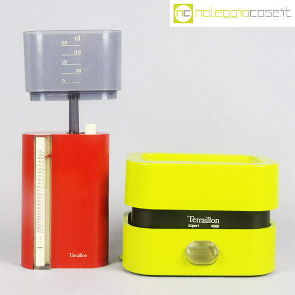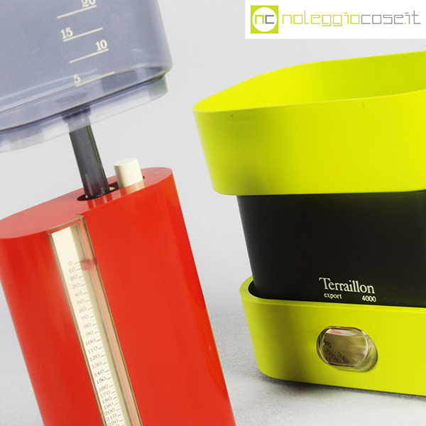 Terraillon, bilancia PL350 e Export 4000, Marco Zanuso, 1970, rossa cm 10x5x26, verde cm 16,5x11x12
