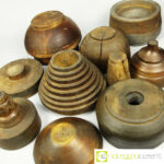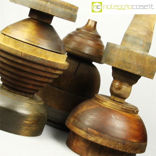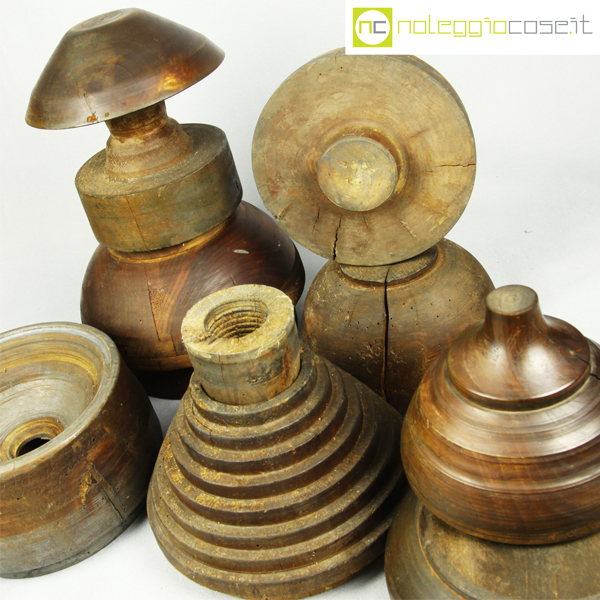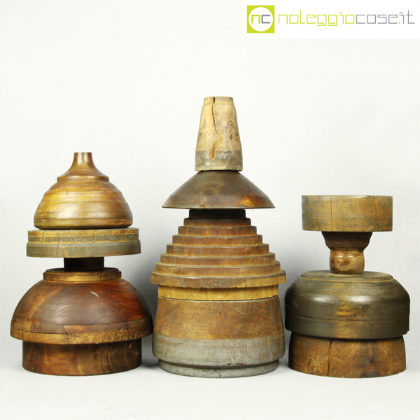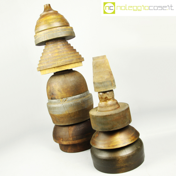 Totem antichi in legno SET 01, stampi per la lavorazione a freddo dell’alluminio – 10 pz., primi ‘900, dimensioni variabili, blocco maggiore cm 24x24x16