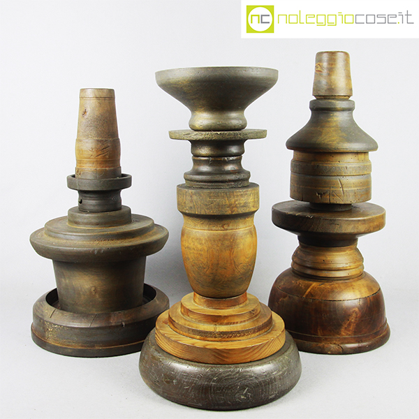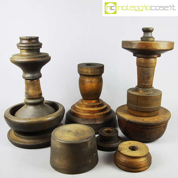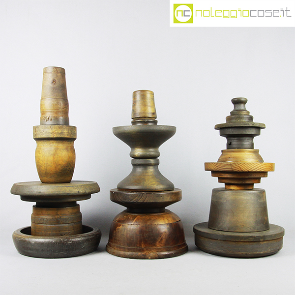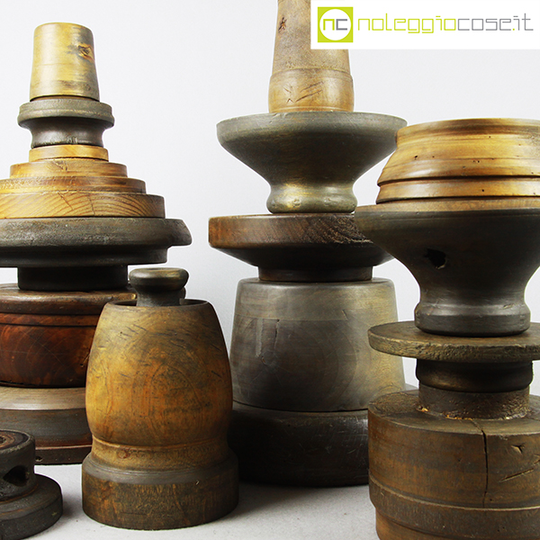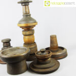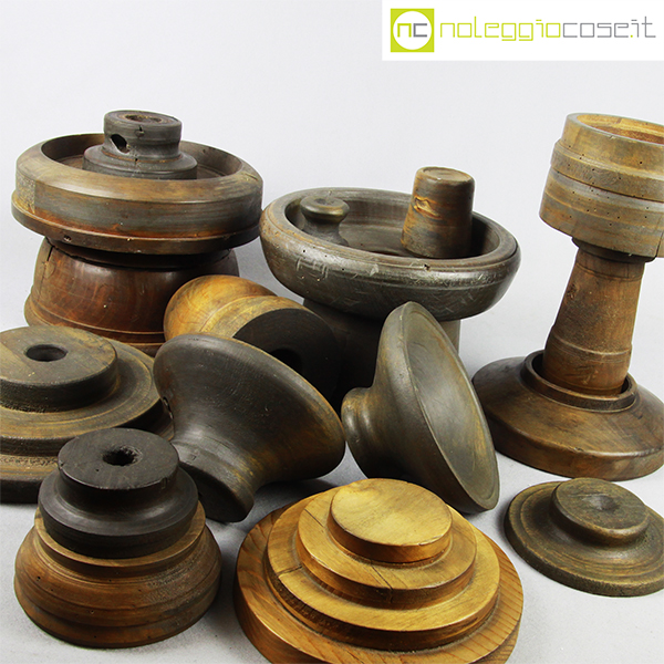 Totem antichi in legno SET 04, stampi per la lavorazione a freddo dell’alluminio – 18 pz., primi ‘900, dimensioni variabili, blocco maggiore cm 24x24x16