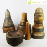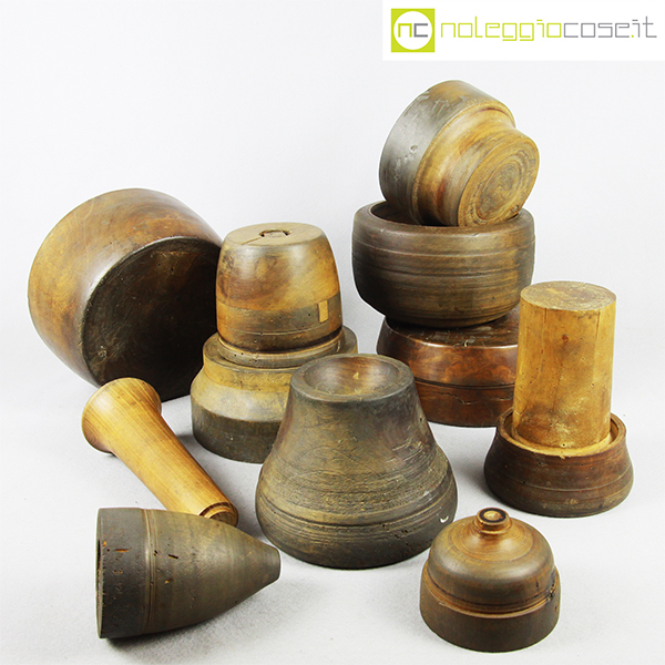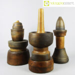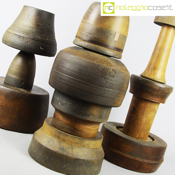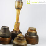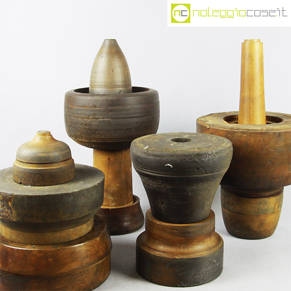Totem antichi in legno SET 06, stampi per la lavorazione a freddo dell’alluminio – 11 pz., primi ‘900, dimensioni variabili, blocco maggiore cm 24x24x16