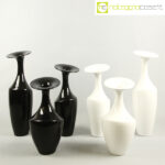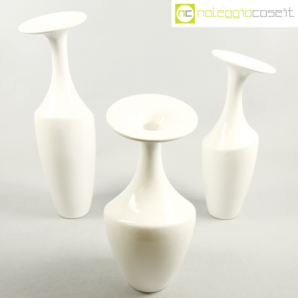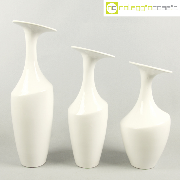 Tris ceramiche vasi bianchi, altezza da cm 30 a cm 41, diametro da cm 11 a cm 14