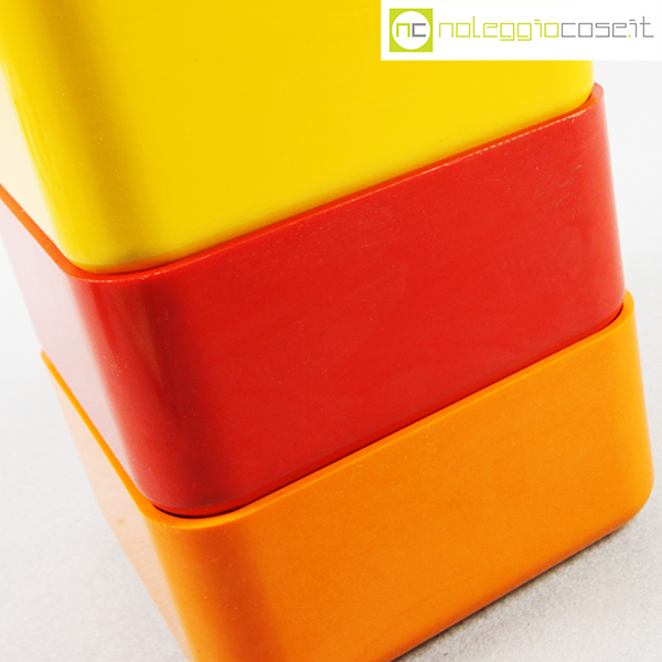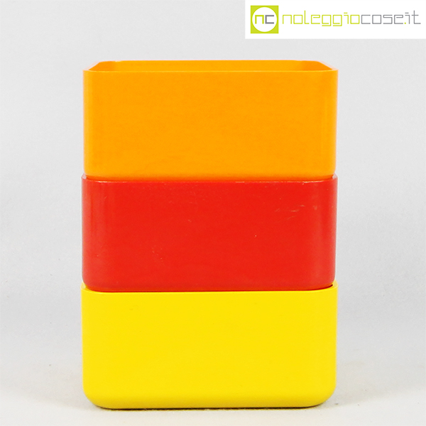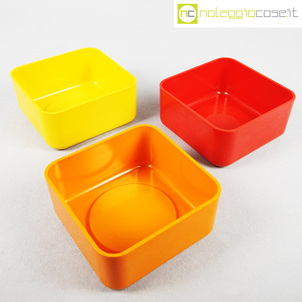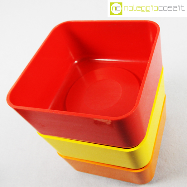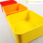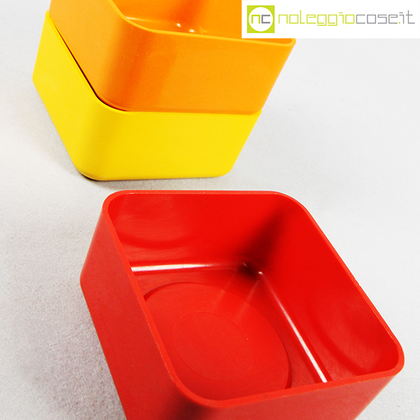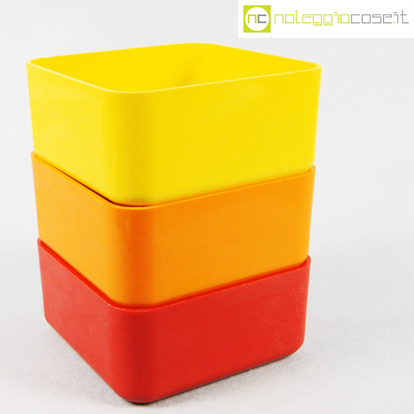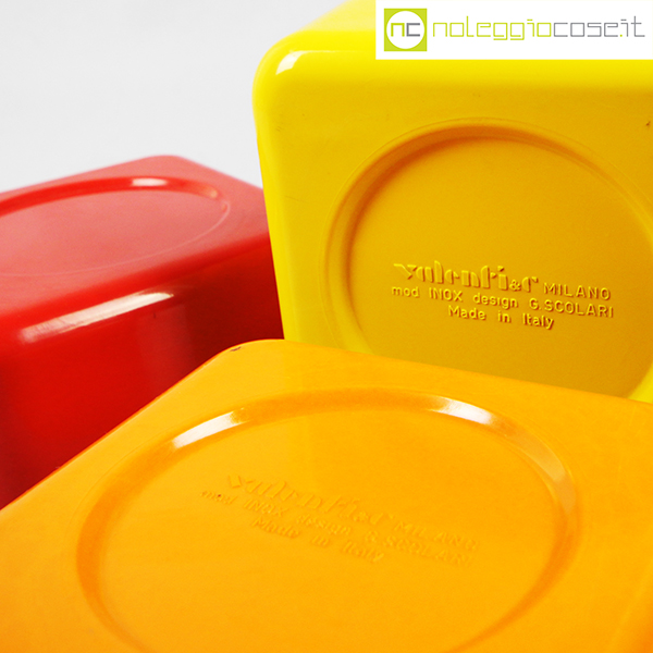 Valenti, tris contenitori mod. Inox, Gaetano Scolari, 1975, cm 14x14x6.5 cad., h impilati cm 18.5