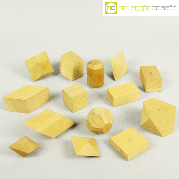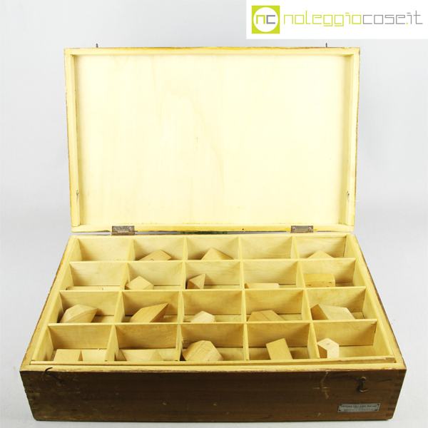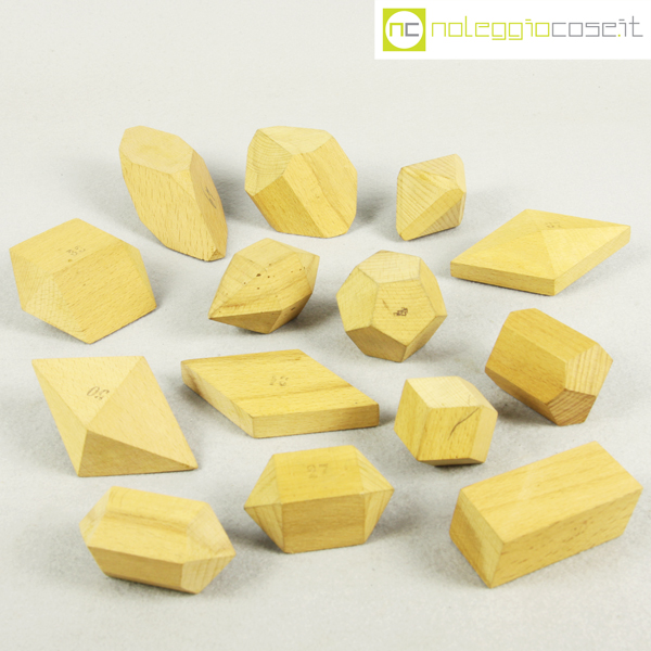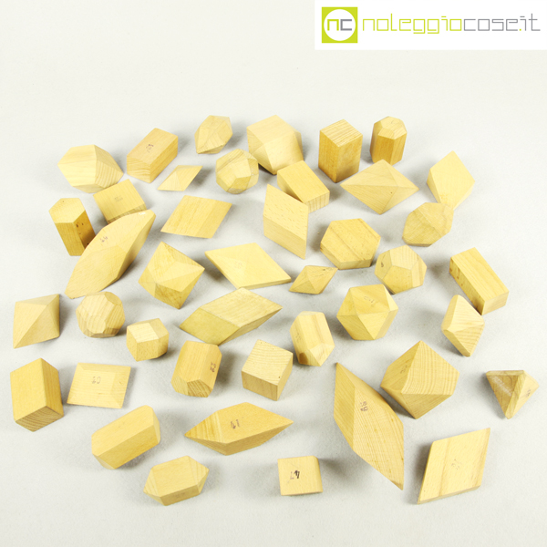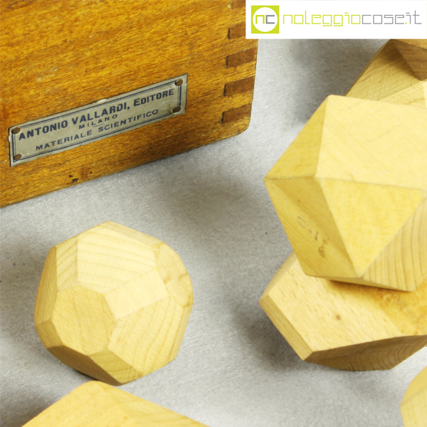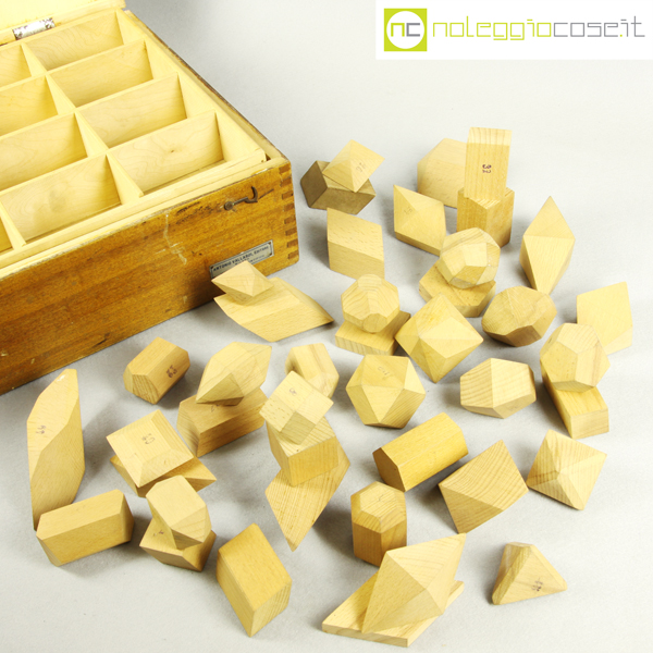 Vallardi Editore, collezione 42 solidi geometrici, 1960, box cm 54x35x14, dimensioni varie circa 6x6x6
