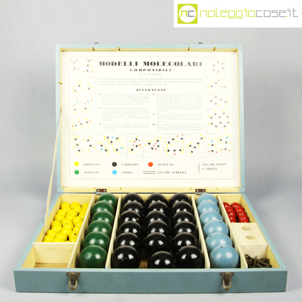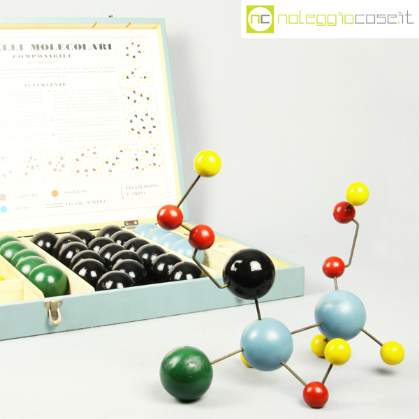 Vallardi Editore, modelli molecolari componibili, 1960, box cm 47x37x8, molecole da cm 2,5 a 5,5