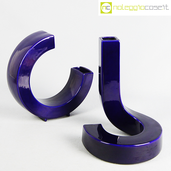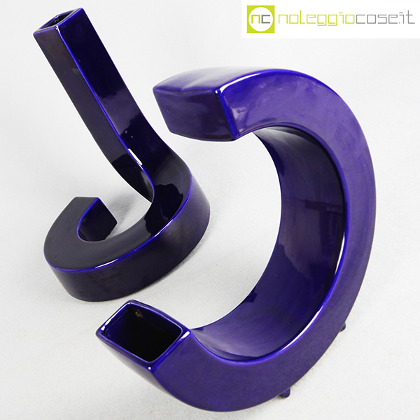 Vasi blu a forma libera, vaso a C cm 23x7x24, vaso alto cm 19x19x26
