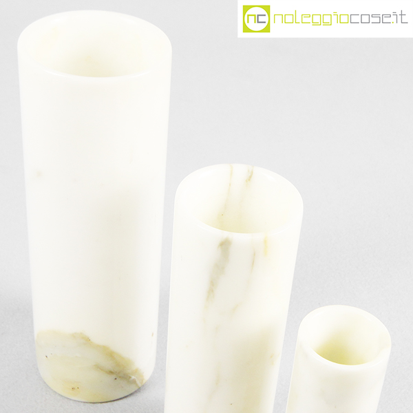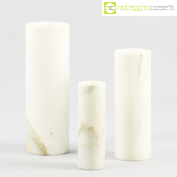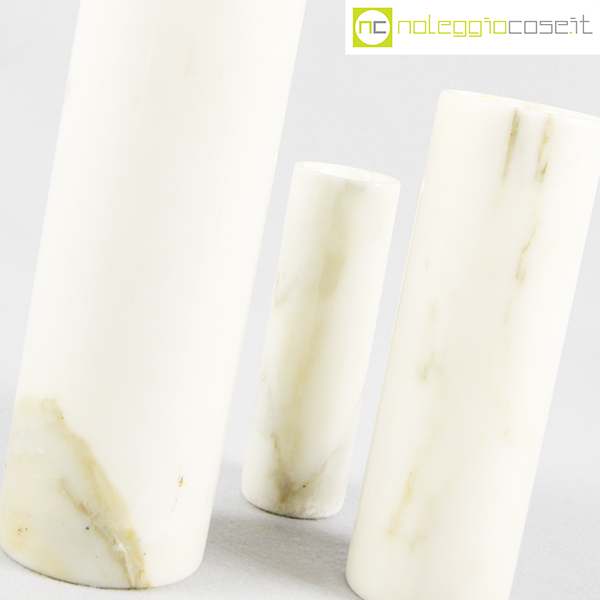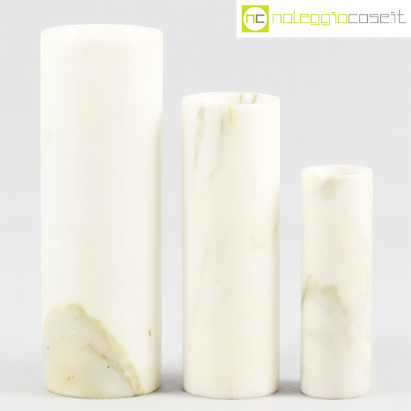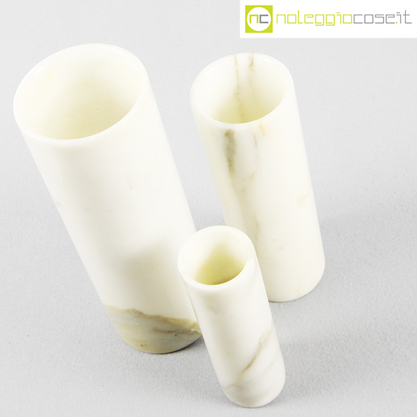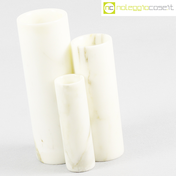 Vasi in marmo bianco, 1980, grande cm 8x8x24, medio cm 6.5×6.5×20, piccolo cm 4.5×4.5×15