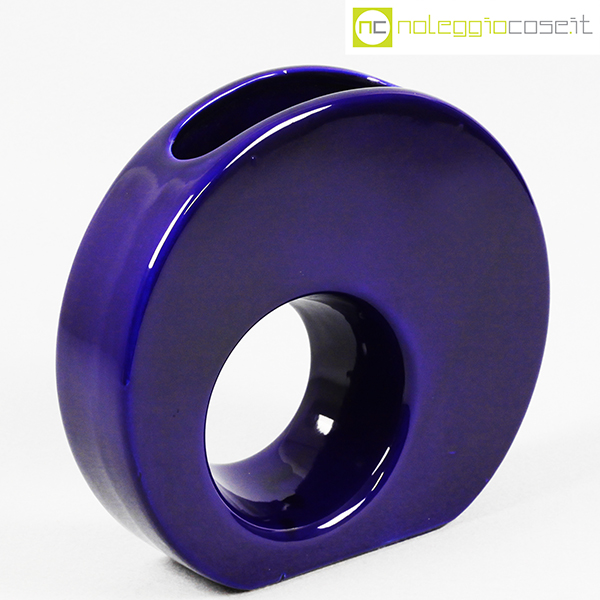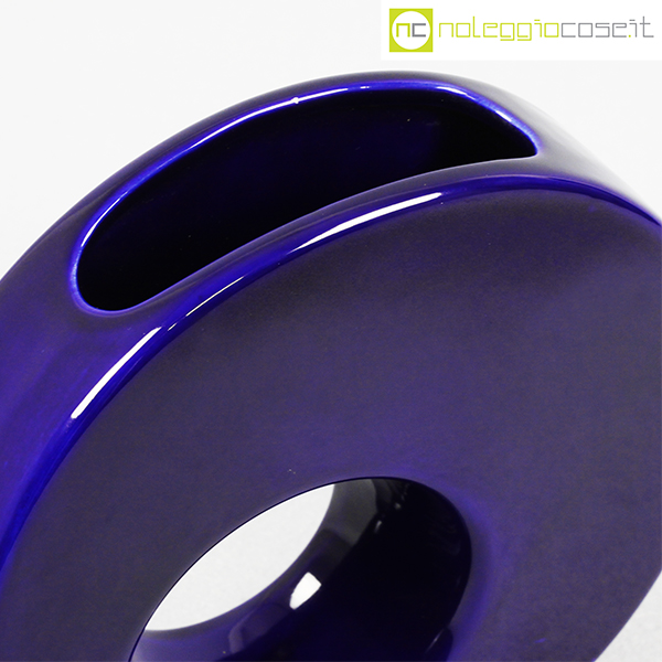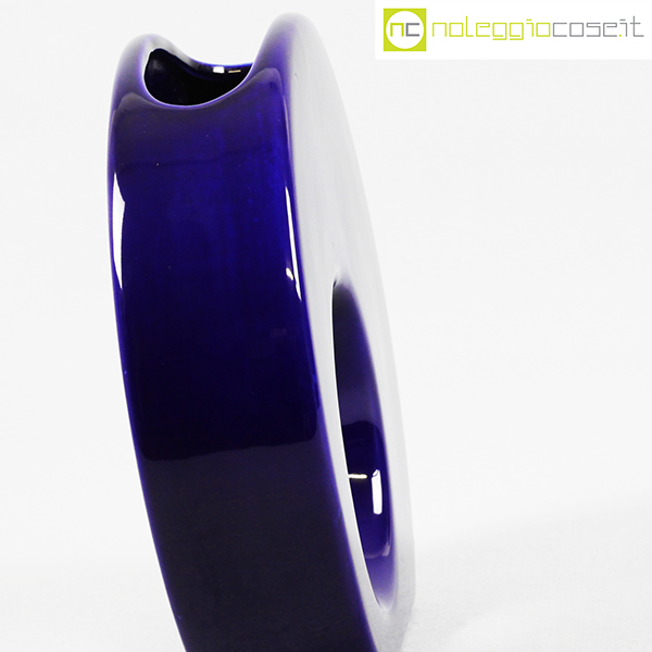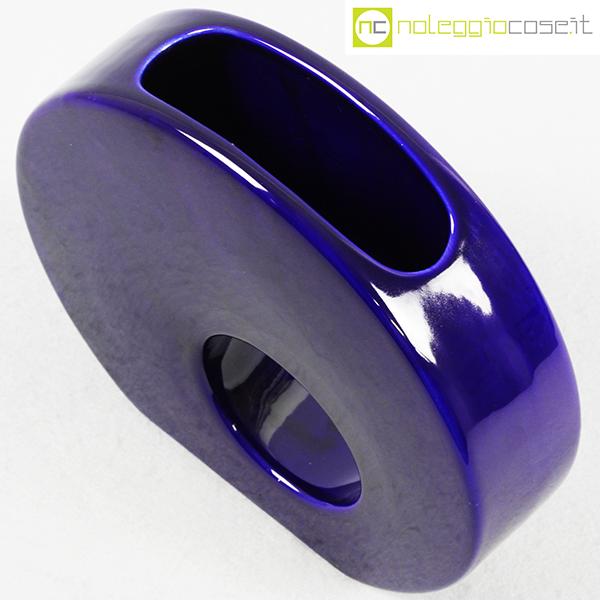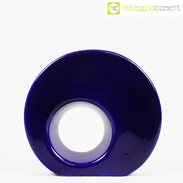 Vaso blu tondo con buco tondo, anni ’70, cm 21,5×5,5 – h 20