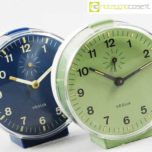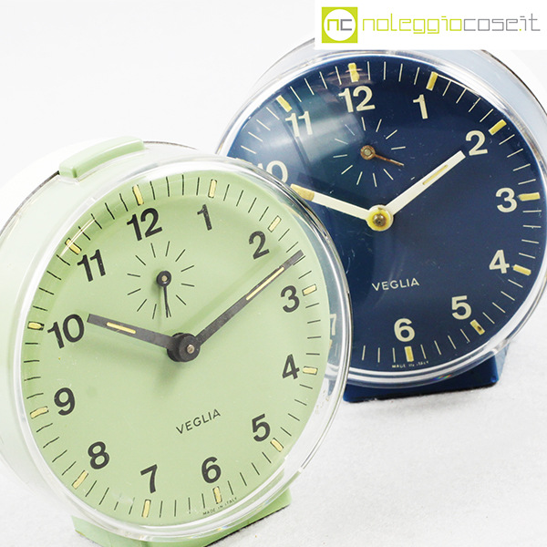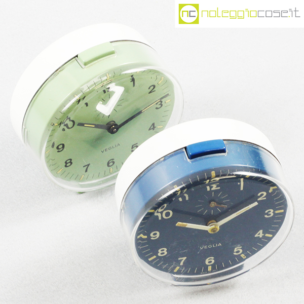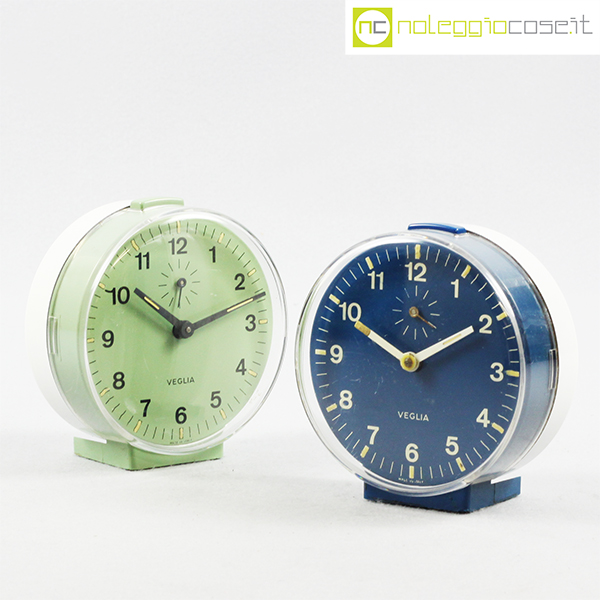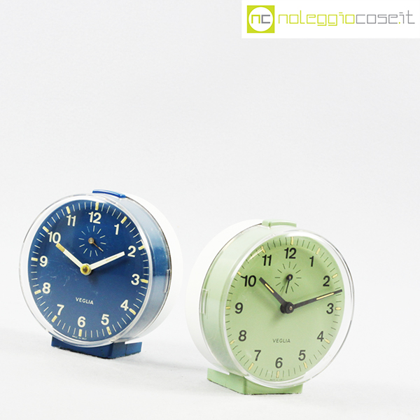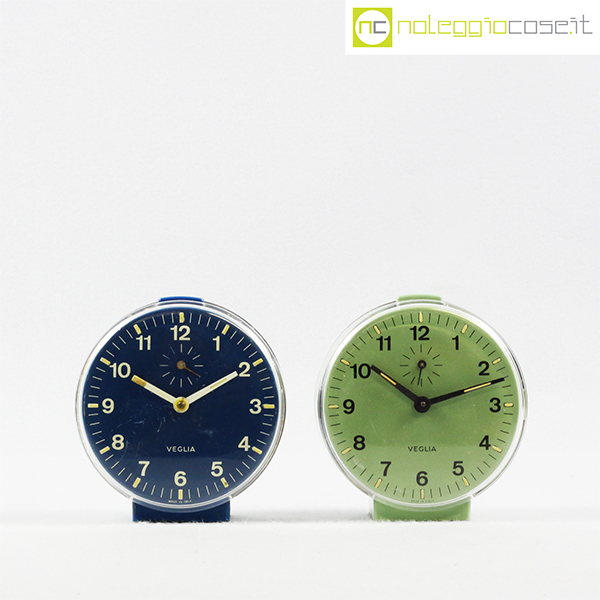 Veglia, orologi da tavolo verde e blu Polaris, Rodolfo Bonetto, 1971, cm 9×9 – h 5