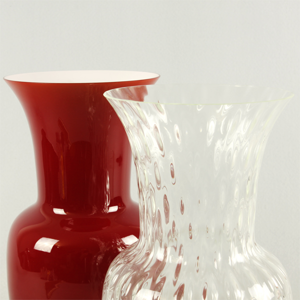 Venini, coppia vasi Opalino, cm 16×16 – h 35