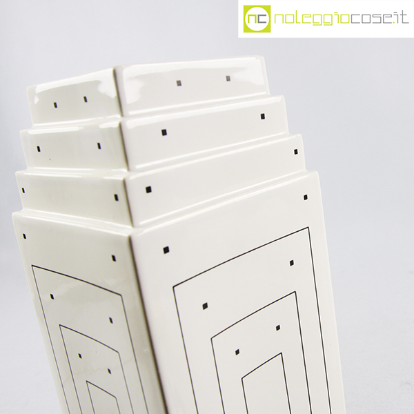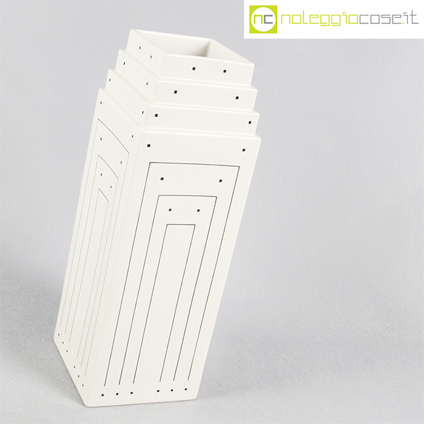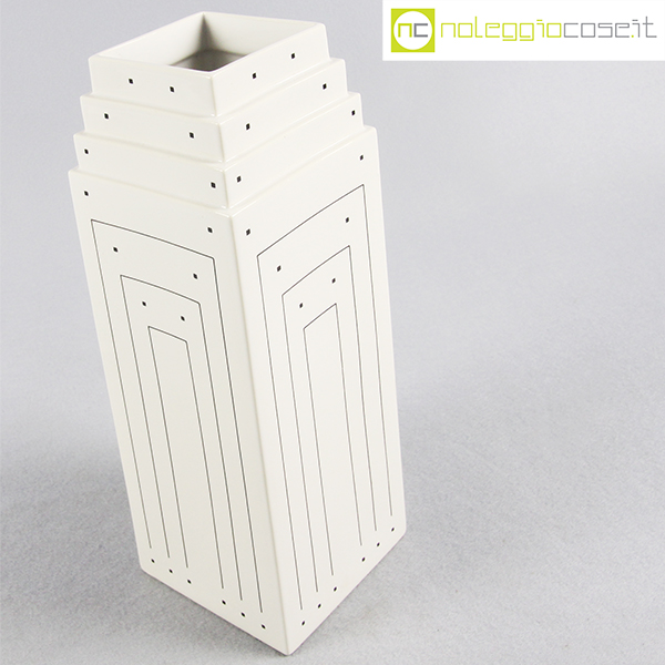 Vienna Collection, vaso bianco con decori, Heide Warlamis, 1981, cm 10×10 – h 29