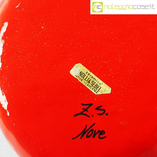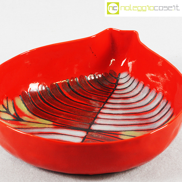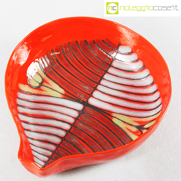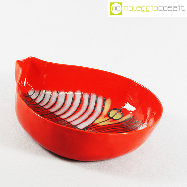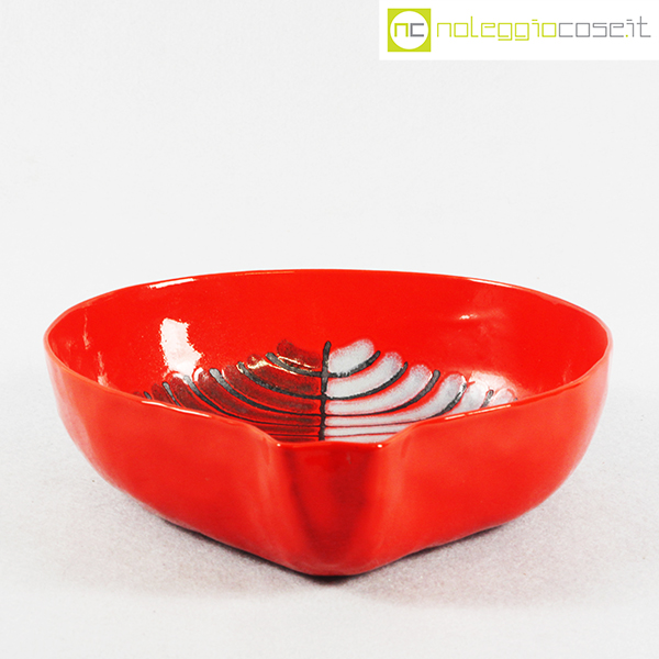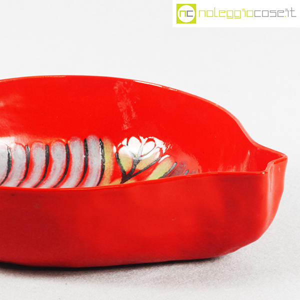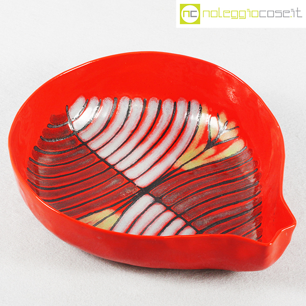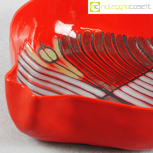 Zanolli & Sebellin, centrotavola rosso con decori, Pompeo Pianezzola, anni ’70, cm 26×23,5 – h 6,5